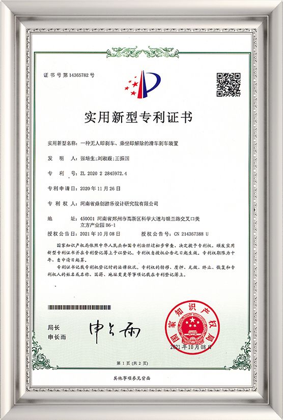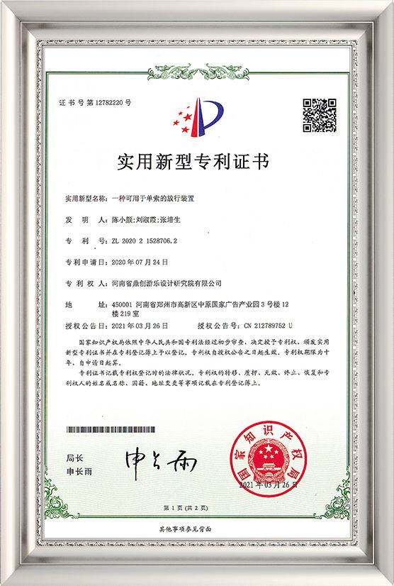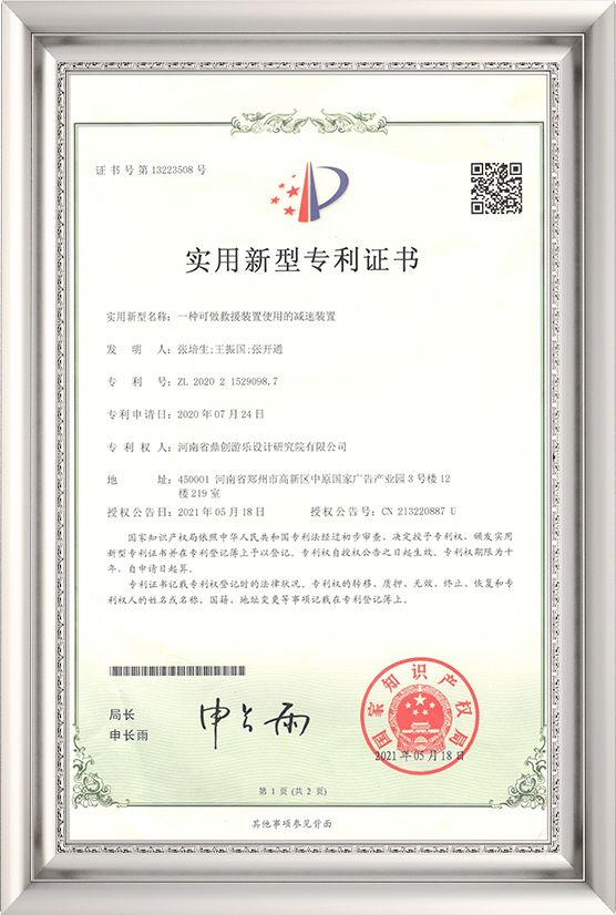 Utility Model of 2020 - A deceleration device that can be used as a rescue device